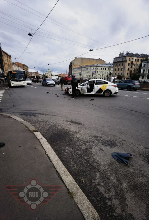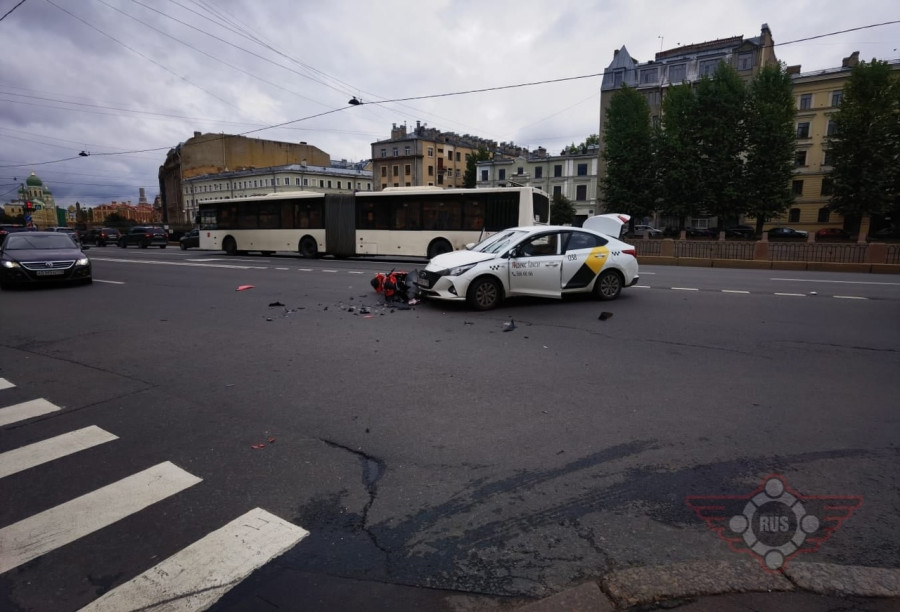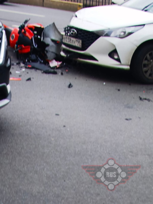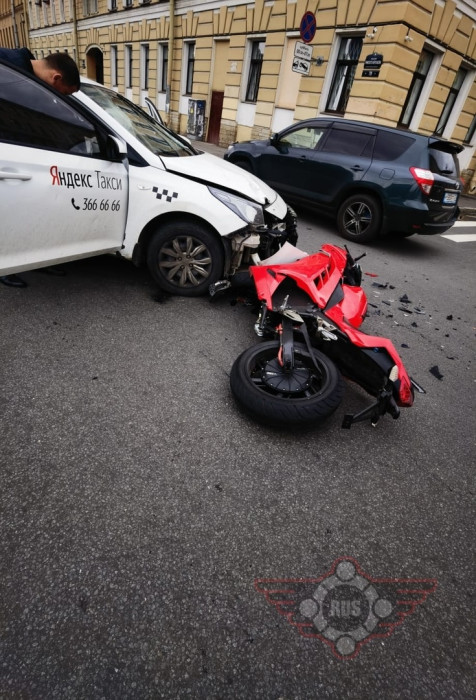 Дтп с мото на пр. Римского-Корсакова, д.75. Такси и мот. Мотоциклист в порядке. Помощь не требуется.