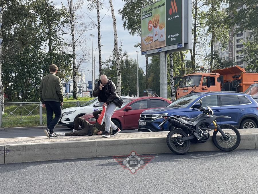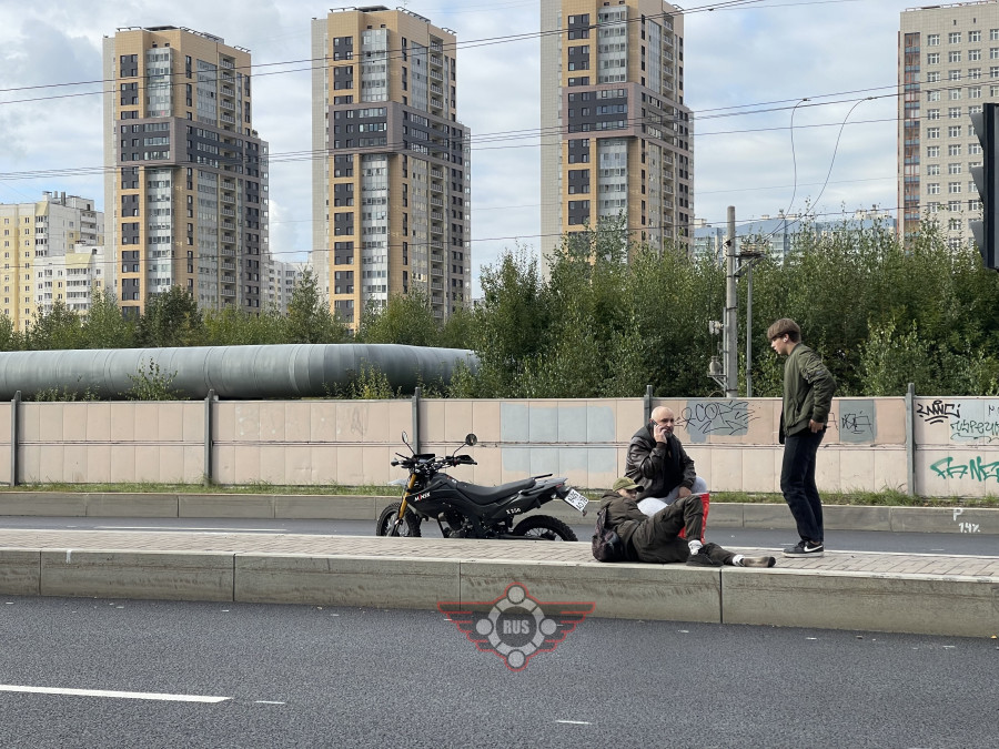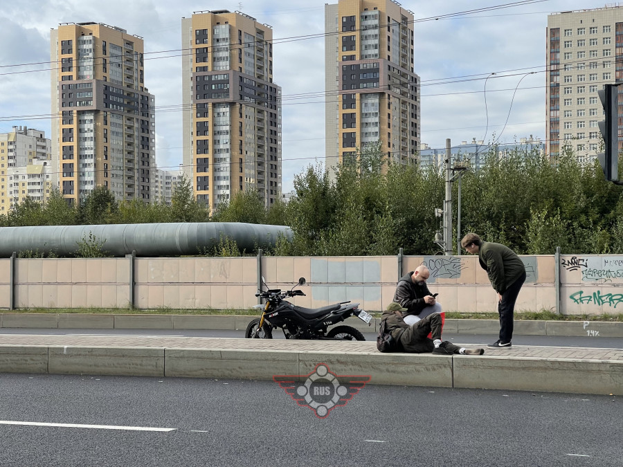 Дтп с мото примерно в 15:00 на Приморском ш., д. 85 (59.993473, 30.204160). Мот номер 8405АО78. Мотоциклист почти в в порядке.
