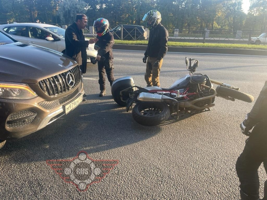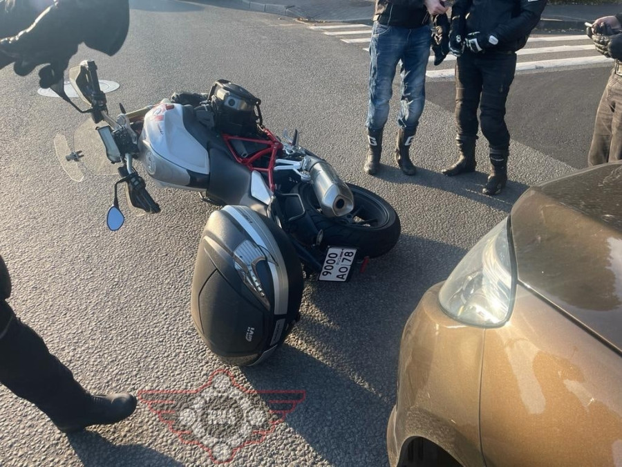 Дтп с мото примерно в 17:00 на перекрестке Приморского пр.и Липовой аллеи. Авто и мот BMW R1200 номер 9000AО78. Мотоциклист (девушка) в порядке. Водитель авто не заметил мотоцикл.