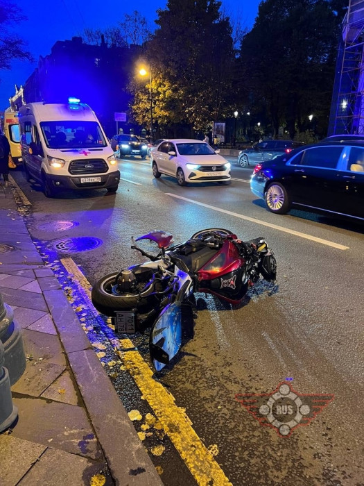 Дтп с мото на Каменноостровском пр., д.26-28. Авто и мот Honda VFR1200 номер 7011AН78. Мотоциклист Михаил, в машине скорой помощи. Жена мотоциклиста едет. По предварительной информации, в дтп пострадали 5 пешеходов.