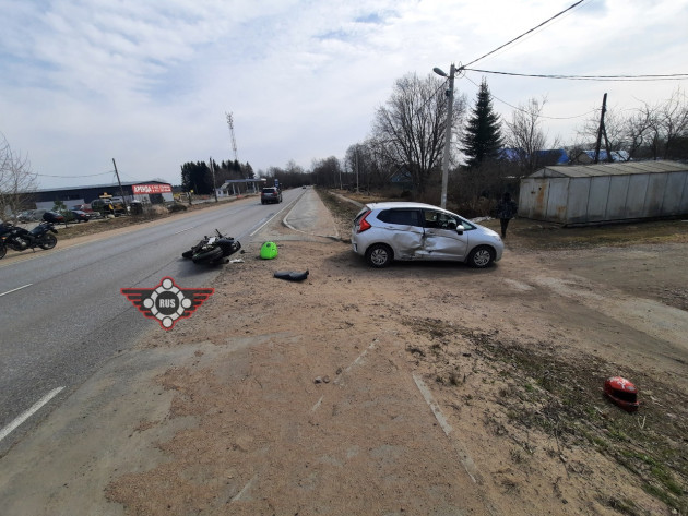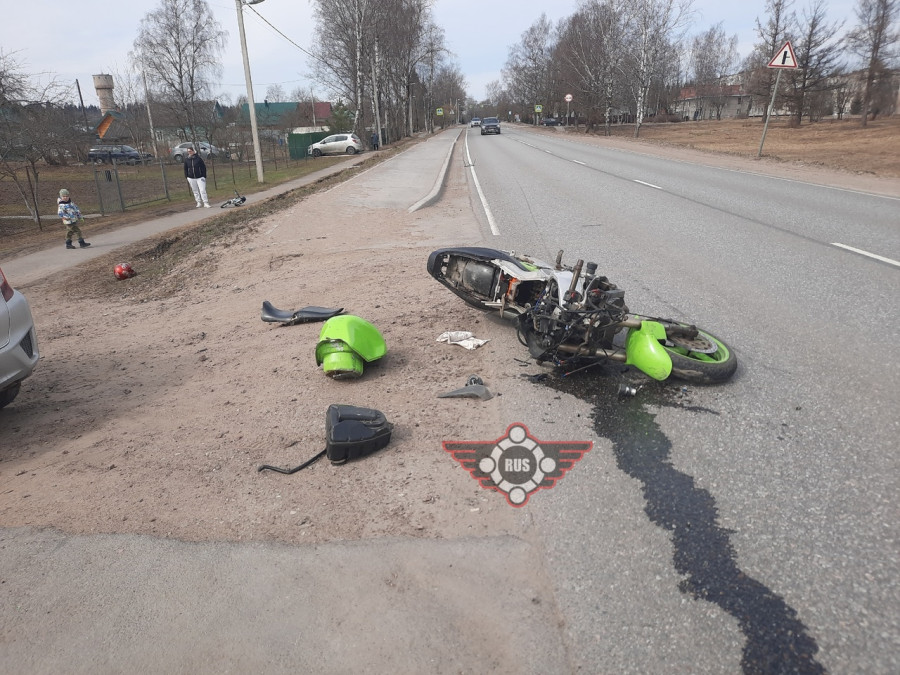 Дтп с мото 16.04.2023 примерно в 11:00 на ул. Мира, д.3, д. Лопухинка. Авто и мот (без номеров). Мотоциклист сбежал с места ДТП.