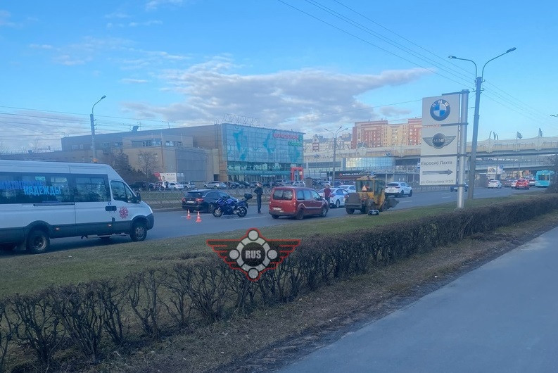 Дтп с мото на ул.Савушкина, д.112, не доезжая до Ленты. О состоянии мотоциклиста информации нет.