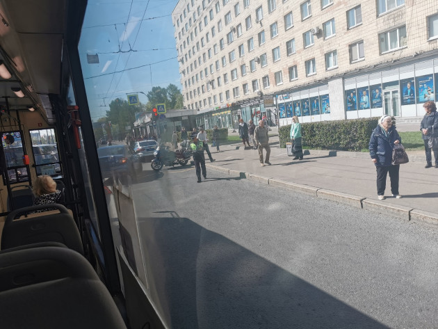Дтп с мото на Политехнической ул., д.17к1Б, у ст.м. Площадь Мужества. Авто и мот. Скорую вызвали. Мотоциклист на ногах, сказал, что похоже что-то с ключицей. От помощи отказался.