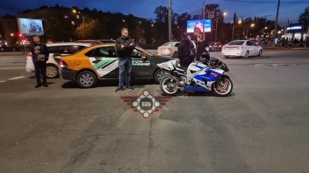 Дтп с мото на перекрестке Торжковской ул. и наб. Чёрной речки. Авто и мот. Мотоциклист в порядке, пострадало только железо