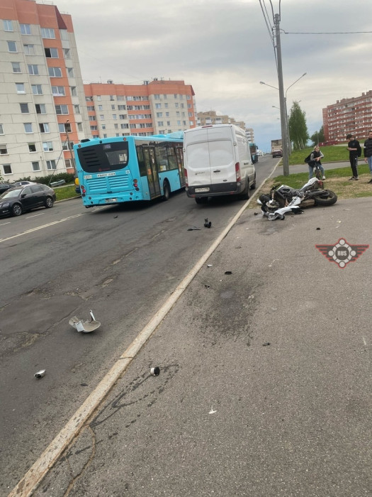 Дтп с мото примерно в 21:00 на ул. Спирина, д.9к1, Красное село. По словам очевидцев, мотоциклист, по всей видимости, без особых повреждений, встал, пересел в машину (синий Форд) и уехал.
