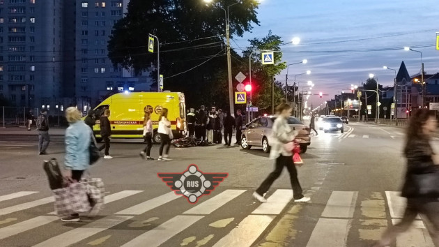 Дтп с мото примерно в 21:20 на перекрёстке ул. Веры Слуцкой и Пролетарской ул., Колпино. Мотоцикл BAJAJ Boxer. Скорая, ДПС на месте. О состоянии мотоциклиста информации нет.