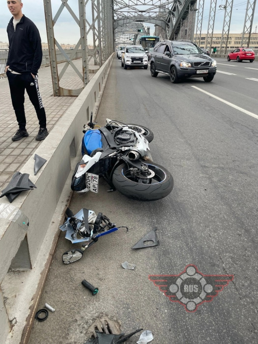 Дтп с мото на Большеохтинском мосту. Мот Suzuki GSX-R750 номер 2204АР78. Мотоциклист в больнице со сломанной рукой.