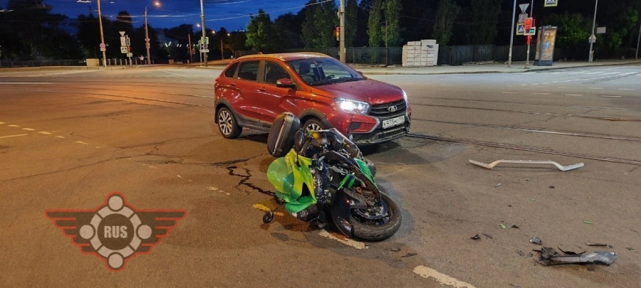 Дтп с мото на Петроградской набережной, въезд на Гренадерский мост. Авто и мот Kawasaki ZX-14. Мотоциклист в норме, легкое сотрясение, подвернута нога.