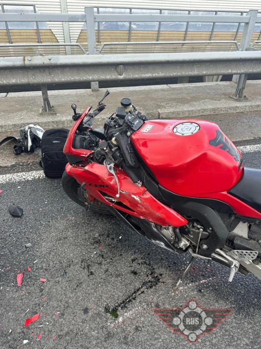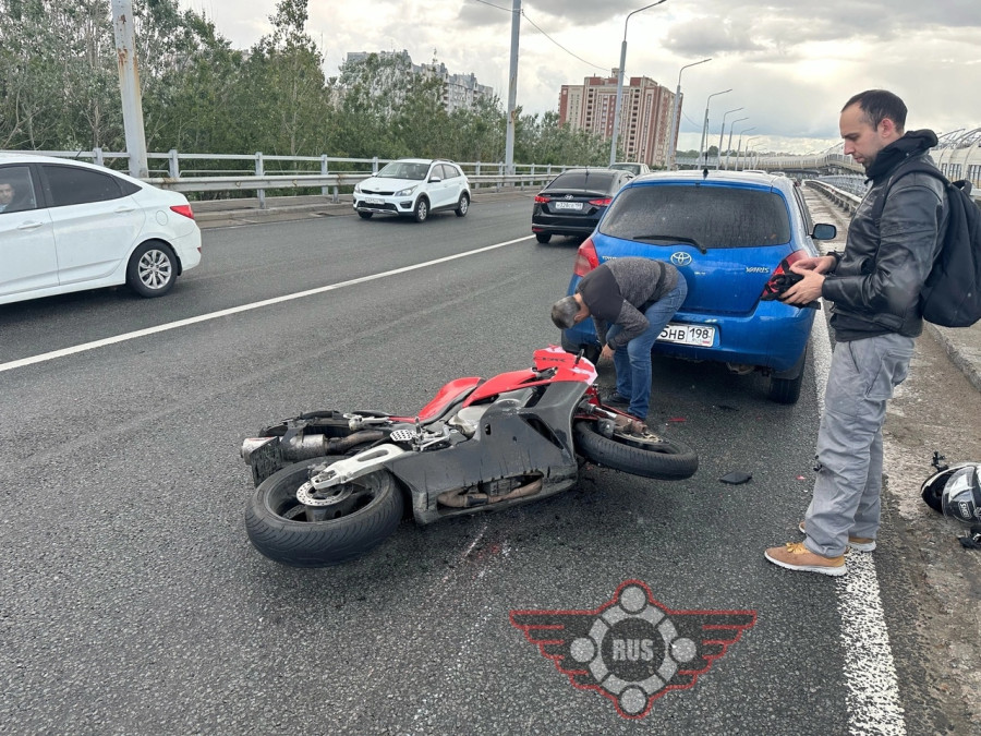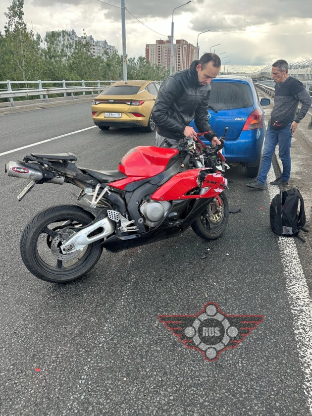 Дтп с мото на Планерном путепроводе. Авто и мот Honda CBR номер 0243AB12. Скользкая дорога, не успел оттормозиться. Мотоциклист цел, оформляют европротокол. Помощь не требуется.