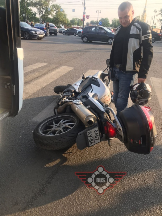 Дтп с мото на перекрестке Каменноостровского пр. и ул. Куйбышева. Мот и автобус. Мотоциклист на ногах.