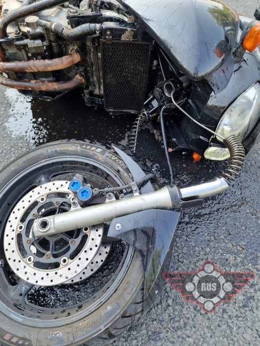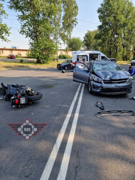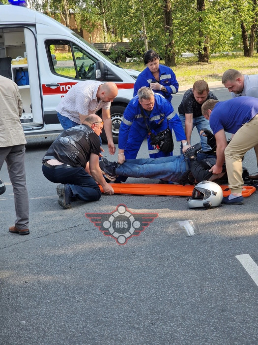 Дтп с мото. ул. Возрождения, д. 31, лит. А. Авто и мот Yamaha TDM 900 номер 6310АЕ70. Мотоциклист Руслан (предположительно травма спины) в машине скорой помощи. На месте друг мотоциклиста. Ситуация под контролем.