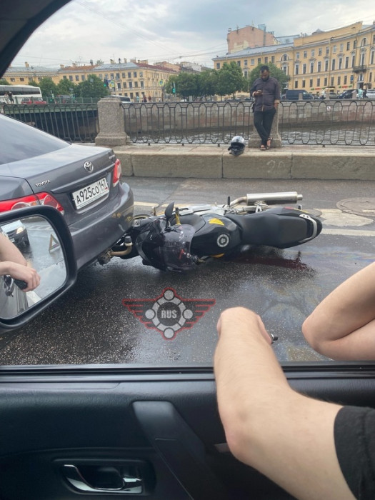Дтп с мото на Наб. реки Фонтанки, д.81. Авто и мот. Мотоциклист на ногах.