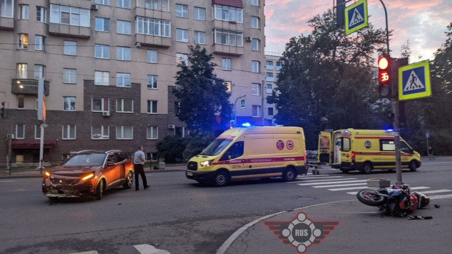 Дтп с мото на пр. Энгельса, д.43. Авто и мот Honda СВR900RR номер 7746АЕ47. Мотоциклист (травма ноги, ключицы) в машине скорой помощи.