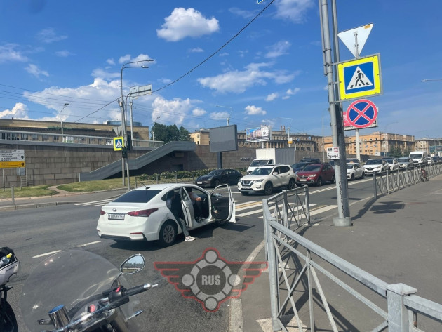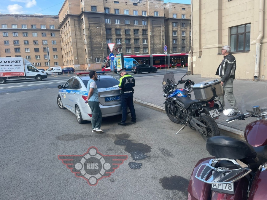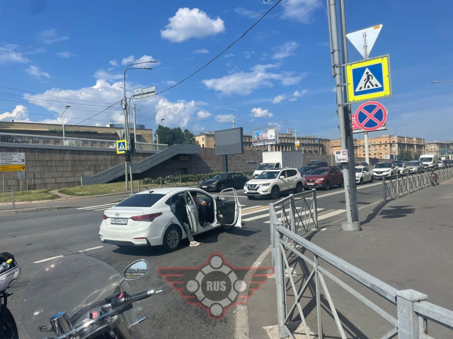 Дтп с мото примерно в 14:40 на Малоохтинском пр., д.82. Авто и мот Triumph. Мотоциклист в порядке. Помощь не требуется. По предварительной информации, водитель автомобиля Hyundai Solaris, при повороте направо, не предоставил преимущества в движении мотоциклу, двигающемуся в попутном направлении. Водитель автомобиля Hyundai, признал свою вину.