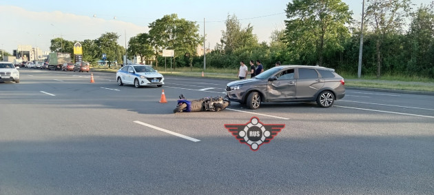 Дтп со скутером на Софийской ул..(59.853215,30.425262) Авто и скутер. Скутерист увезён в больницу. На месте его брат.