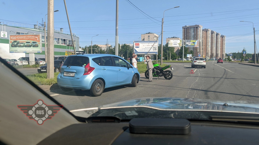 Дтп с мото на перекрестке пр. Энергетиков пр. и пр. Маршала Блюхера. Авто и мот. Мотоциклист в порядке. Помощь не требуется.