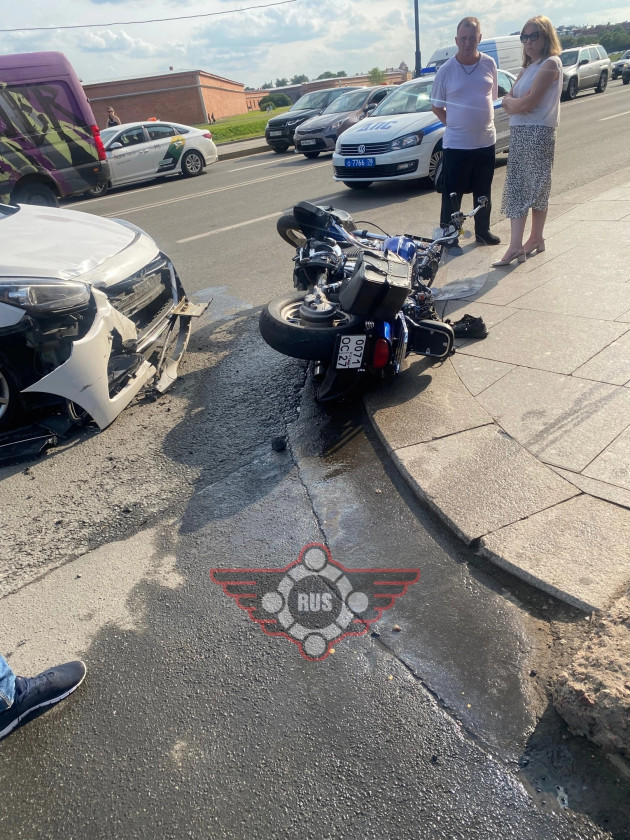 Дтп с мото. Александровский парк, д.7. Авто и мот Honda Shadow номер 0071ОС27. Мотоциклист жив, увезли в больницу.