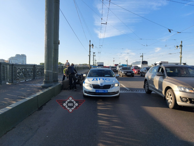 Дтп с мото на Литейном мосту (в сторону центра). Авто и мот Ducati Monster. Мотоциклист в порядке. Помощь не требуется.
