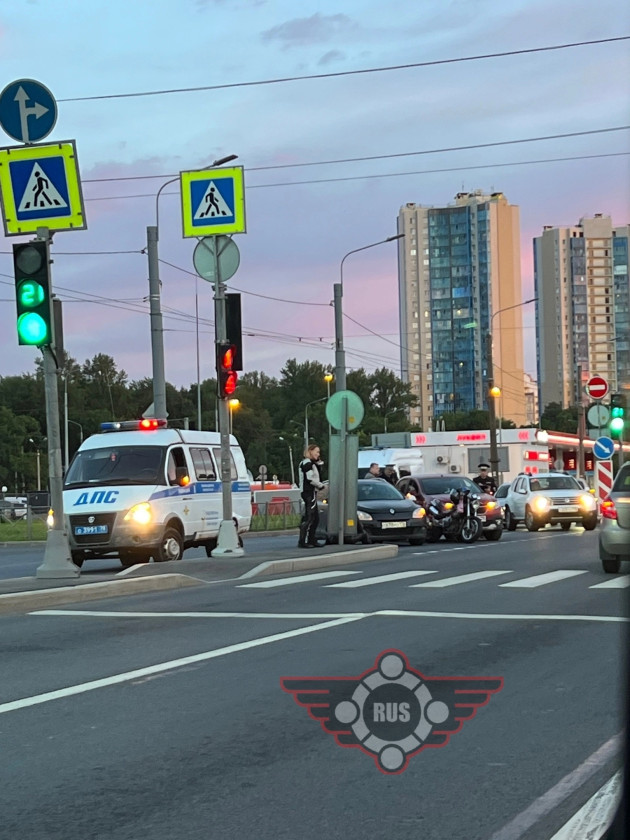 Дтп с мото на перекрестке ул. Маршала Захарова и пр. Маршала Жукова. Авто и мот. Мотоциклист на ногах
