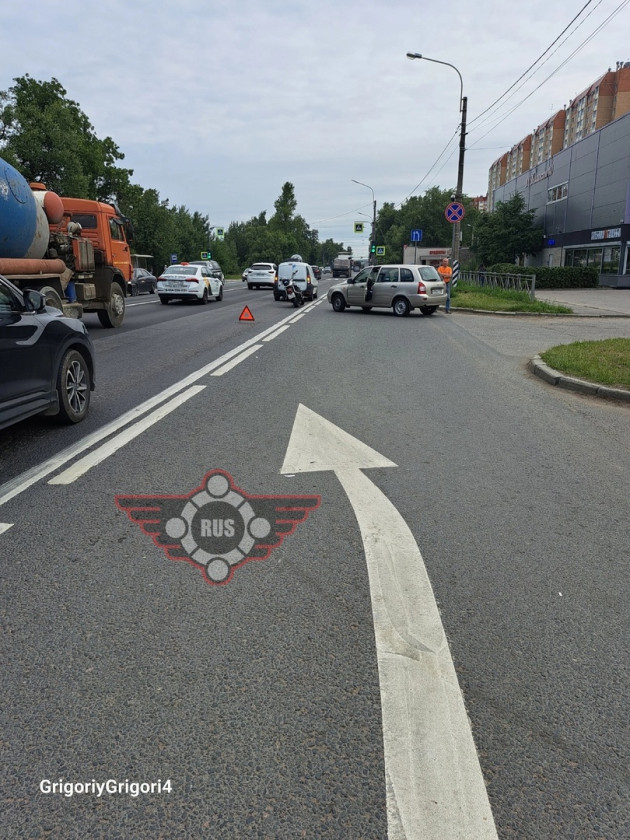 Дтп с мото на Красносельском ш.,д.40, Горелово (Вкусно и точка). Авто и мот номер 4947АН78. Мотоциклист в порядке. Помощь не требуется. Водитель автомобиля, при выезде с прилегающей территории, не предоставил преимущества в движении мотоциклу.