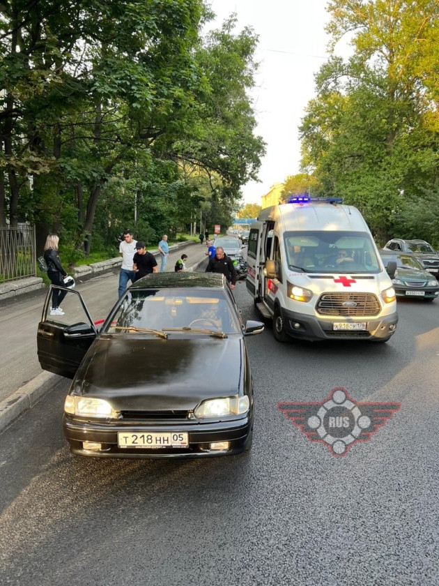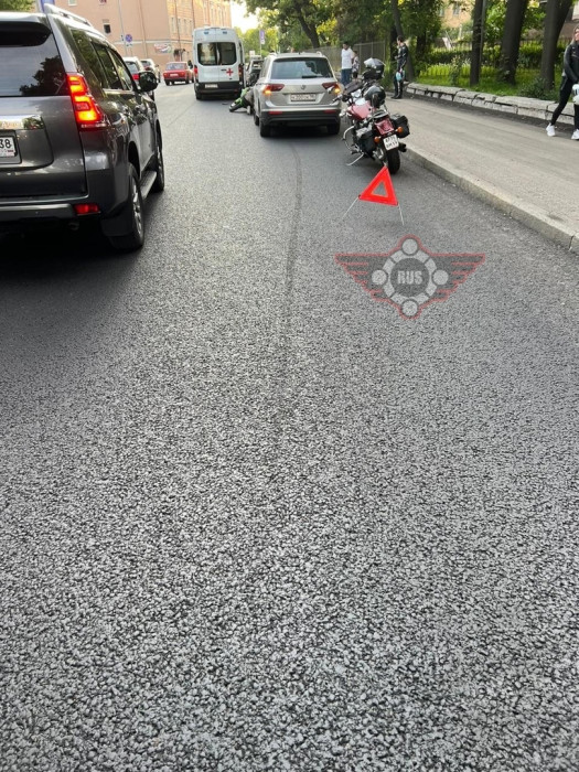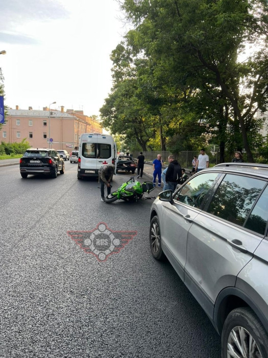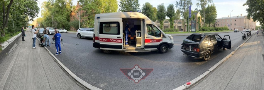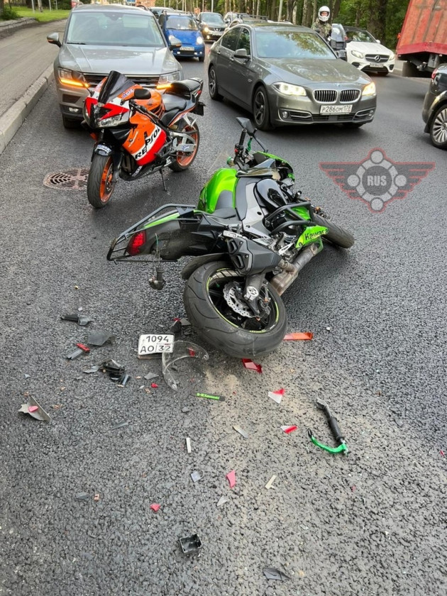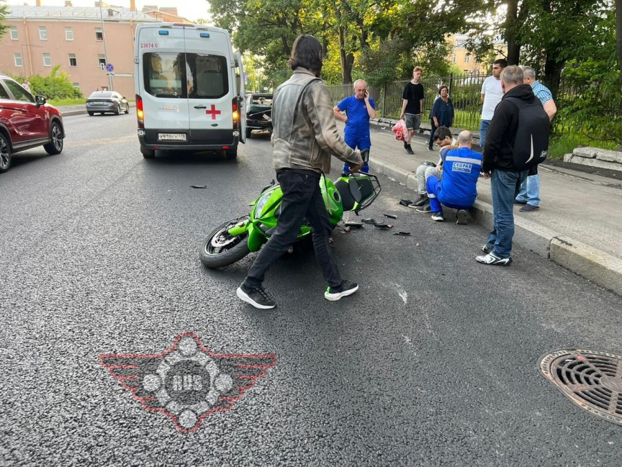 Дтп с мото на Приморском пр., д. 57, к.1. Авто и мот Kawasaki Ninja 1000 номер 1094АО32. Мотоциклист Сергеев Виталий Александрович (травма плеча) в машине скорой помощи.