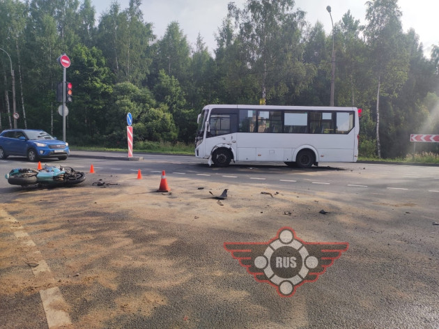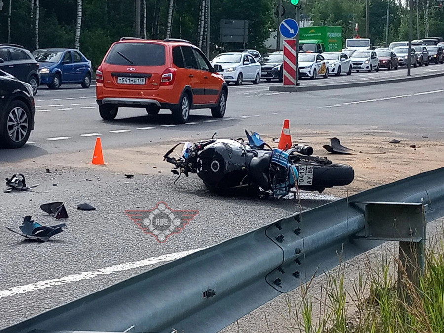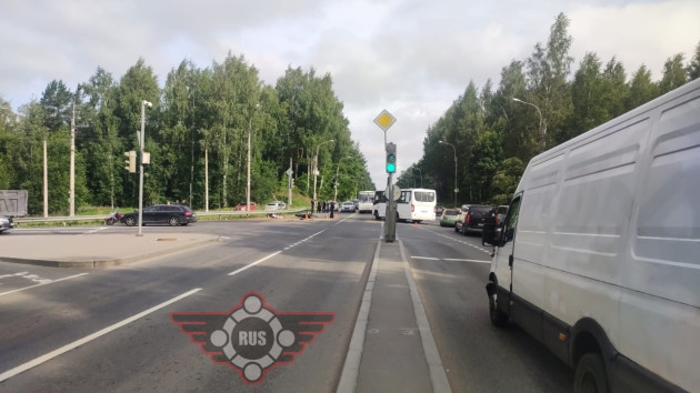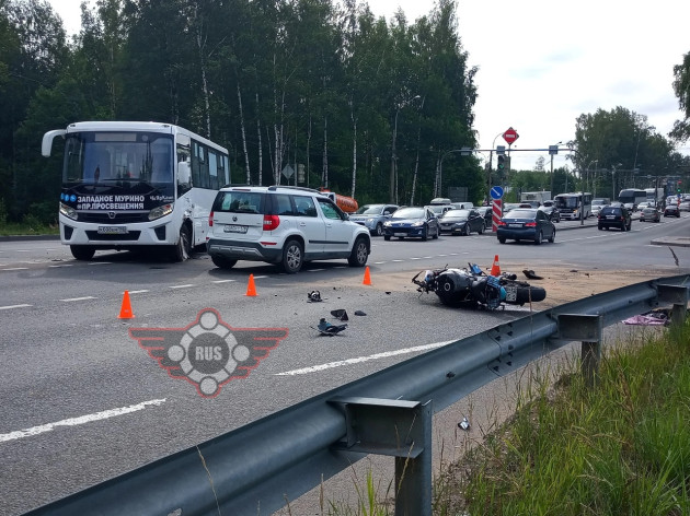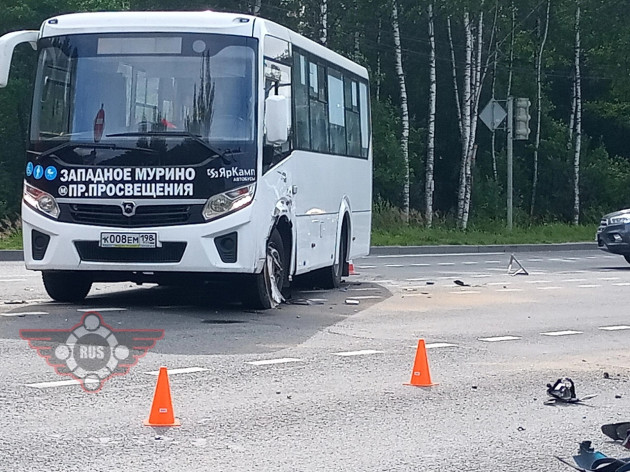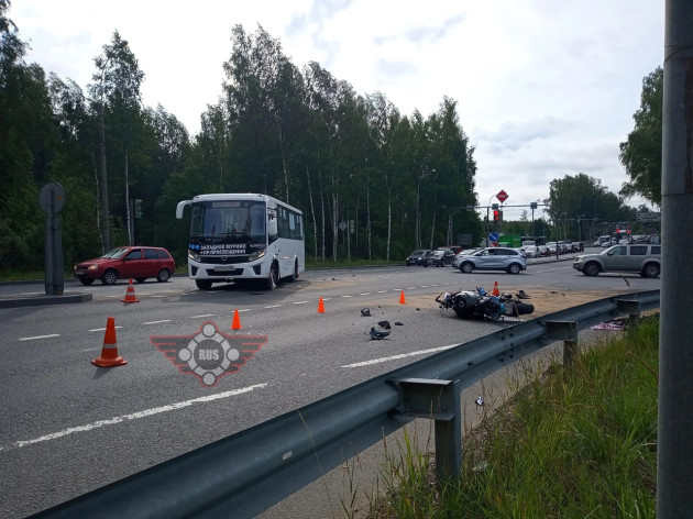 Дтп с мото примерно в 05:55 на перекрестке Выборгского ш. и Горского ш. (поворот на Левашово). Автобус и мот Suzuki GSX-R600 номер 0413АУ86. Мотоциклист погиб. По предварительной информации, водитель автобуса, при перестроении/повороте налево, не убедился в безопасности маневра и совершил столкновение с двигающимся в попутном направлении мотоциклом.