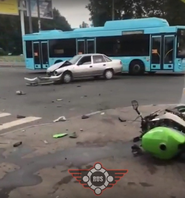 Дтп с мото 14.07.2023 примерно в 18:00 на перекрестке ул.Бабушкина и бульв. Красных Зорь. Авто и мот. По предварительной информации, водитель автомобиля Daewoo Nexia проехал на красный сигнал светофора, сбил пешехода и мотоцикл.