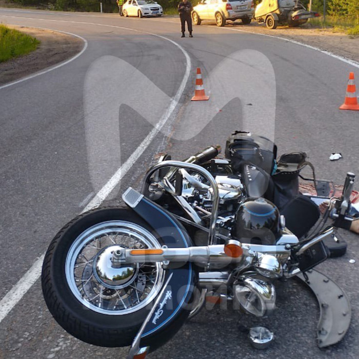 Дтп с мото 15.07.2023 примерно в 18:25 на 42-м км 41К-083 «Молодежное – Верхнее Черкасово». Авто и мот Harley-Davidson номер 8107АР78.
