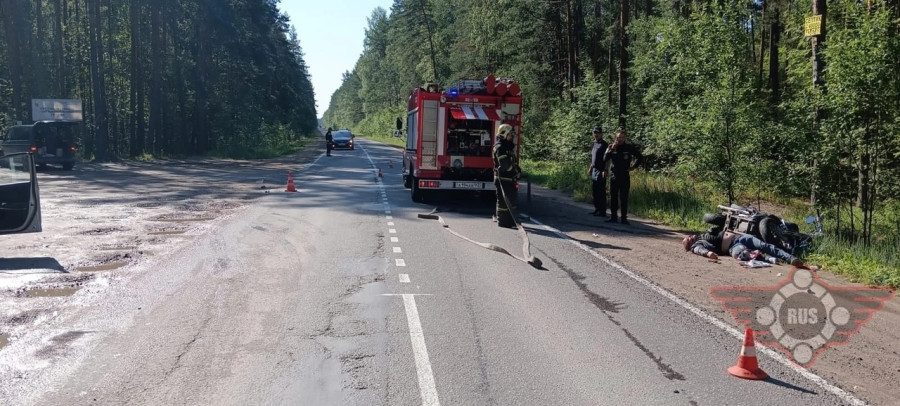 Дтп с мото на дороге 41К-307, Дорога Мяглово - Островки, Всеволожский район. (59.841812, 30.691453) Авто и мот Yamaha XV1600A номер 0599АЕ47. Мотоциклист Червонобаба Владимир Валентинович, 10.01.1976г.р., тяжёлый.