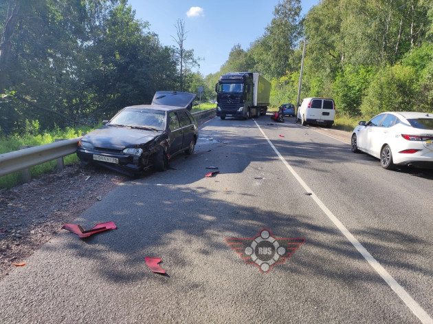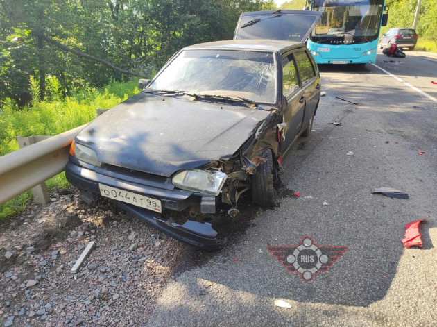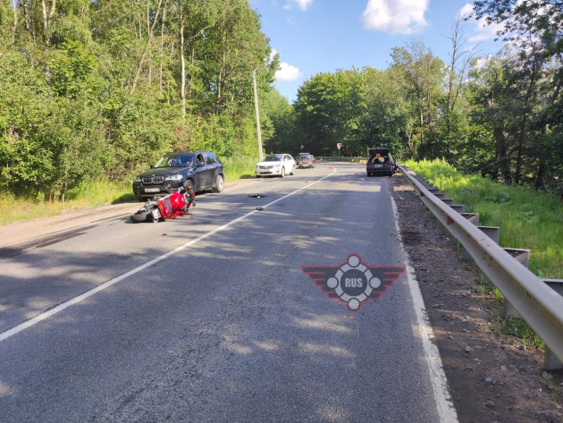 Дтп с мото на 41К-078, Лен. обл. (59.821860, 30.581580). Авто и мот Honda VFR800 номер 1653АР78. Мотоциклист (травма ноги) в машине скорой помощи.