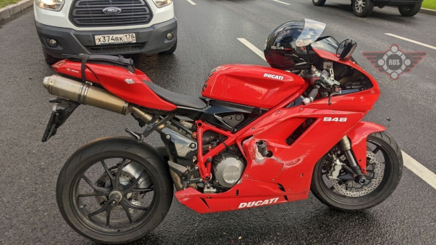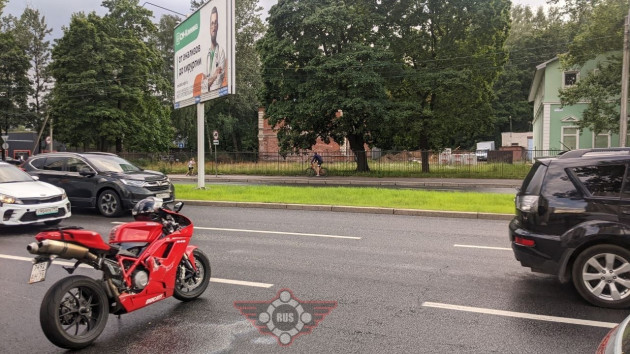 Дтп с мото на Выборгском ш., д.15. Мот Ducati 848 номер 7492АН78. Мотоциклист (девушка) в машине скорой помощи. ДПС на месте.