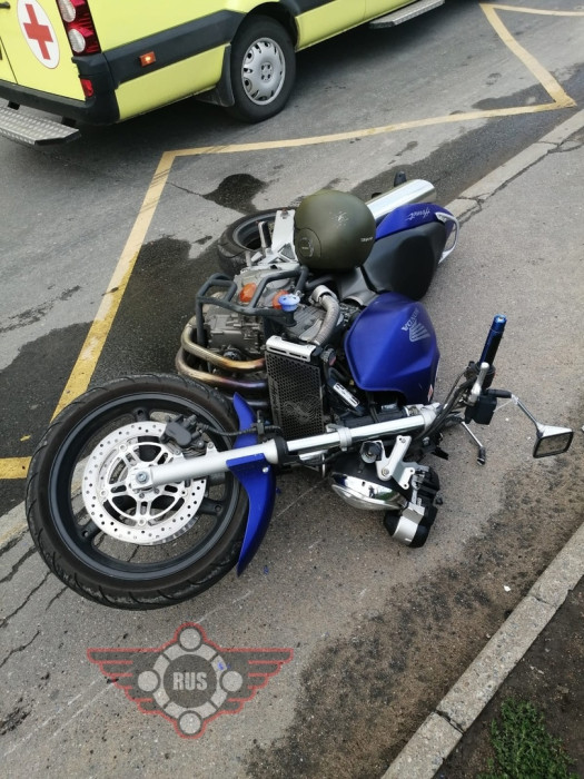 Дтп с мото на Кузнецовской ул., 58к1. Авто и мот Honda Hornet 600 номер 7689АМ78. Мотоциклист Чистяков Михаил Михайлович, в сознании, травма руки.