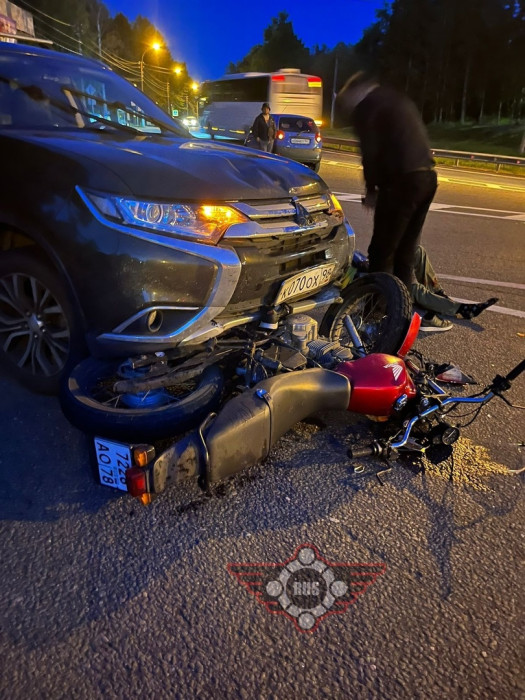 Дтп с мото на Приморском ш., п. Серово, Курортный район, (60.198720, 29.552896). Авто и мот Honda 7228АО78. Мотоциклист Валерий (в сознании) в машине скорой помощи.