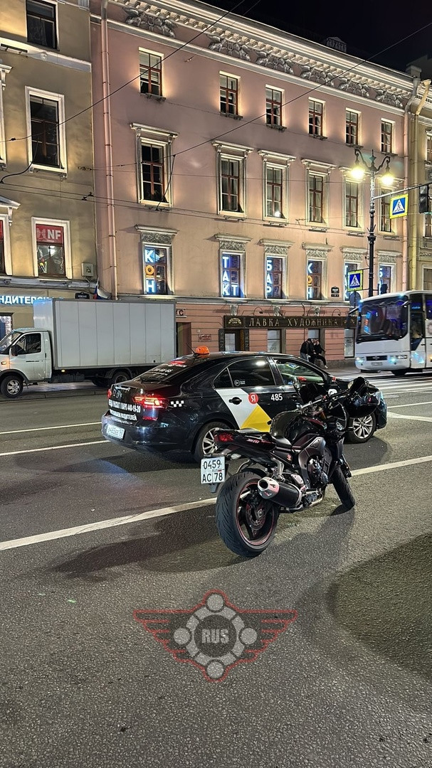 Дтп с мото примерно в 00:00-00:10 на Невском пр., д.6. Мот Yamaha FZ1 номер 0459АС78 и авто (серый пикап неопознанной марки с670мм.) Автомобиль скрылся с места ДТП. Мотоциклист в порядке. Дмитрий ()