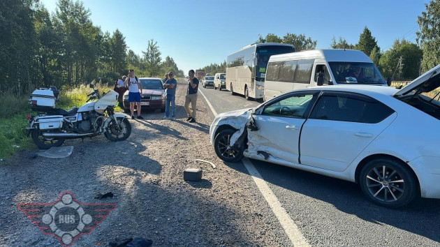 Дтп с мото на Волхонском ш. (59.780567, 30.208600). Авто и мот Kawasaki KZ1000 номер 0475АТ77. Мотоциклист в сознании, травма руки и ноги.