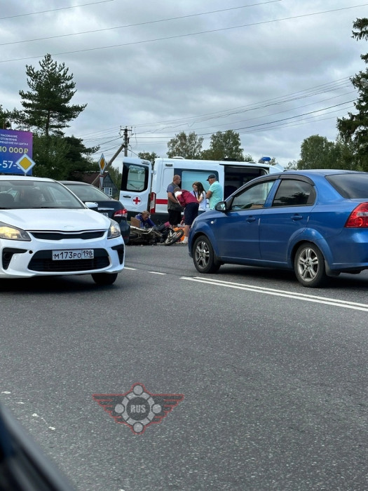 Дтп с мото на Ленинградском ш., п. Токсово, Всеволожский район, Лен. обл. (60.143522, 30.528185). Авто и мот. Мотоциклист в машине скорой помощи.