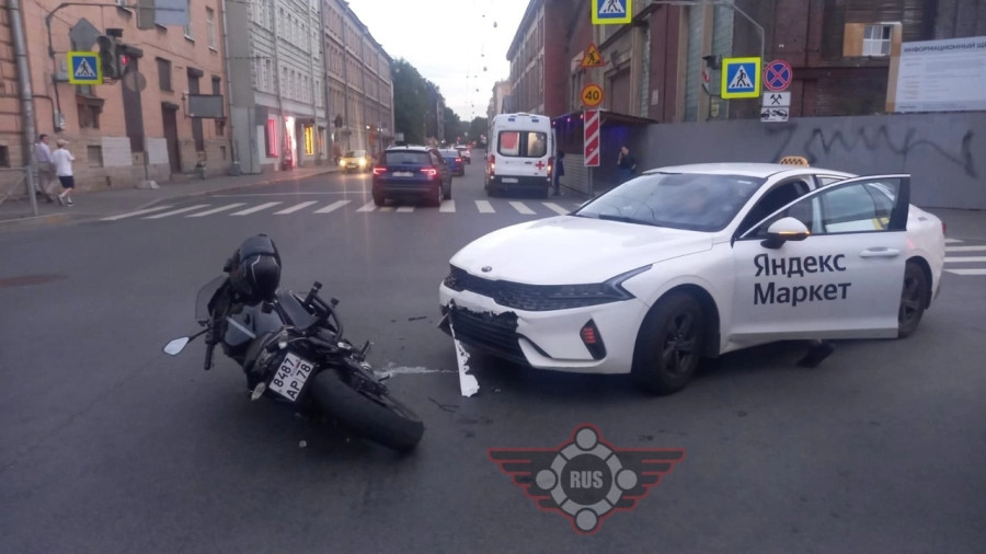 Дтп с мото на Большом Сампсониевском пр., д. 35. Авто и мот Kawasaki EX650 номер 8487АР78. О состоянии мотоциклиста информации нет.