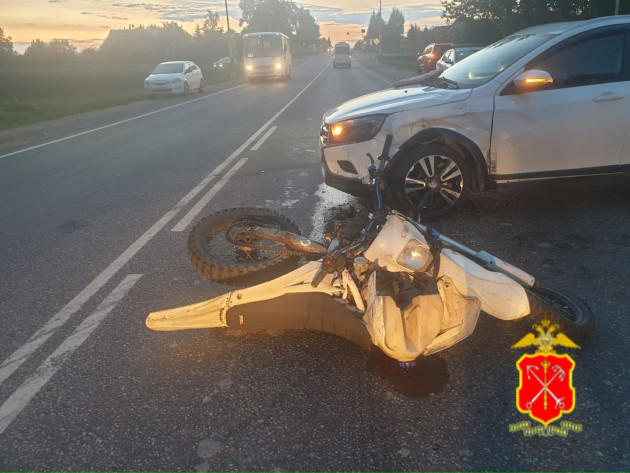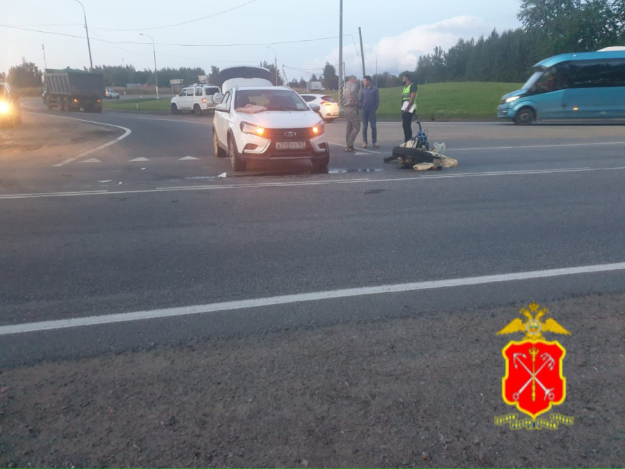 Дтп с мото 23.08.2023 в 19:40 на 25 км автодороги «Санкт-Петербург – пос. Свердлова – Всеволожск» (59.897624, 30.676486). 15-летний подросток, управляя питбайком без номеров, двигался от поселка им. Свердлова в сторону Всеволожска по обочине главной дороги и совершил столкновение с выехавшим на перекрёсток автомобилем «Лада Веста», под управлением 42-летнего мужчины.