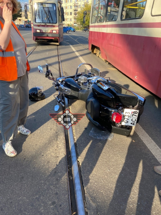 Дтп с мото примерно в 15:50 на Лесном пр. (59.978326, 30.344738). Мот Harley-Davidson номер 0733АС78. Мотоциклист в порядке. Упал сам, поскользнулся на рельсах. Уехал своим ходом.