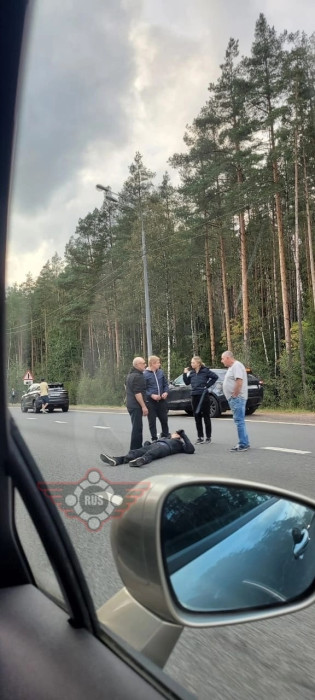 Дтп с мото на 32-м км Мурманского ш., Р-21 Кола. Авто и мот. Мотоциклист в сознании, лежит.