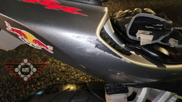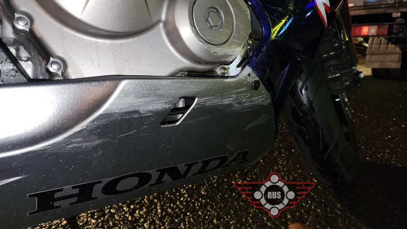 От автора поста: Я навернулся на торможении перед пешеходным переходом, прочертил 10 метров не меньше. Асфальт настолько скользкий, что пешеходы скользят как по льду. Вызвал ДПС. Оформили ДТП. Со мной все ок. У мотоцикла отломана лапка тормоза и потёрт пластик по правому борту. Не сильно обидно, потому что все равно нужно было красить. Пожарные приехали мыли, так и не отмыли.