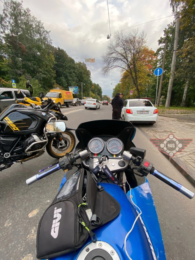 Дтп с мото на пр. Энгельса, д.3. Авто и мот BMW R1250GS Adventure номер 7120АР78. Мотоциклист в порядке. От помощи отказался.