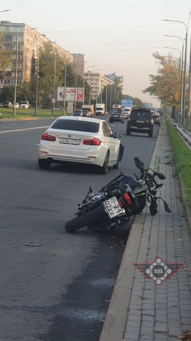 Дтп с мото на Белградской ул., д.26к.7. Авто и мот номер 21CF02 (KZ). Мотоциклист (сотрясение, травма руки) увезён в НИИ Скорой помощи им. И.И. Джанелидзе. На месте родственники мотоциклиста.