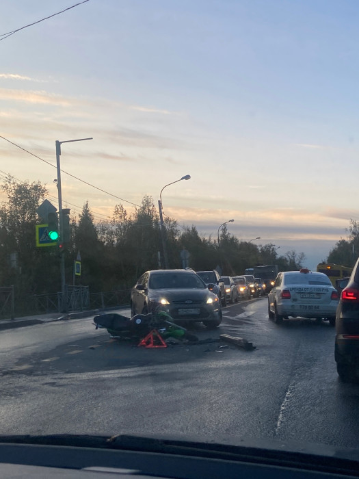 Дтп с мото на перекрестке Петрозаводского ш. и Плановой ул.. Авто и мот. О состоянии мотоциклиста информации нет.