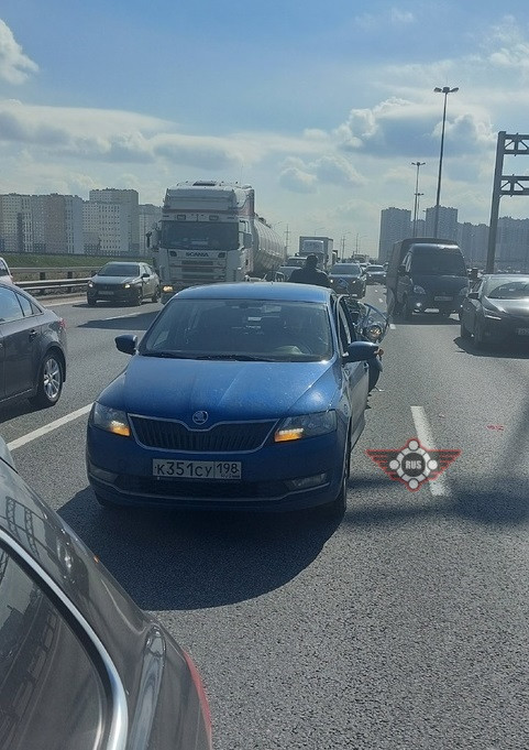 Дтп с мото примерно в 10:30 на КАД, 35-й километр, внешнее кольцо. Авто и мот. Мотоциклист в порядке. По его словам, зазевался. От помощи отказался.