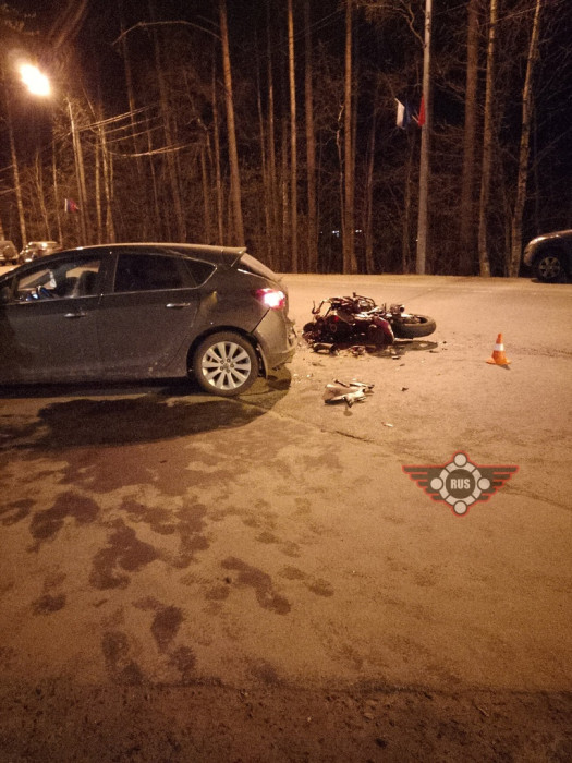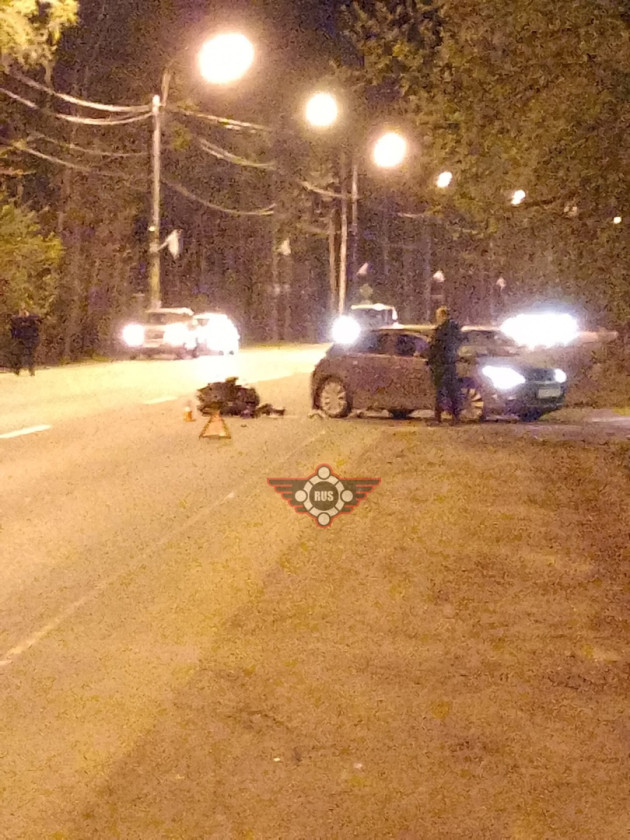 Дтп с мото примерно в 19:30 на Ленинградской ул., д.70 к.1, пос. Песочный, Курортный район. Авто и мот Suzuki GSX-R. Со слов сотрудников ГИБДД, мотоциклист в больнице, жив, увезли в сознании. Со слов владельца авто, тормозил, но доехал.