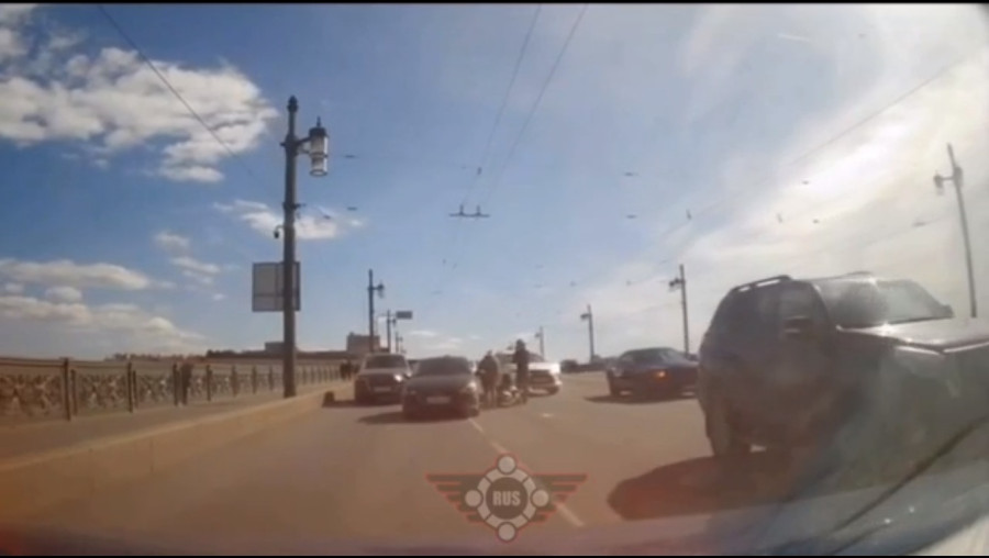 Дтп с мото примерно в 16:00 на Литейном мосту. Авто и мот. Мотоциклист в порядке.