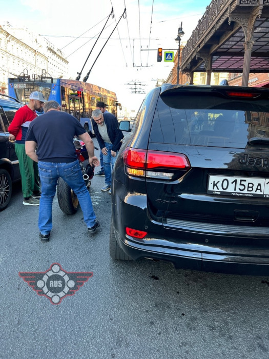 Дтп с мото примерно в 16:20 на Невском пр., д.47. Авто Jeep и мот Honda. Со слов мотоциклиста, водитель автомобиля открыл дверь, не посмотрев в зеркало. Мотоциклист в порядке.