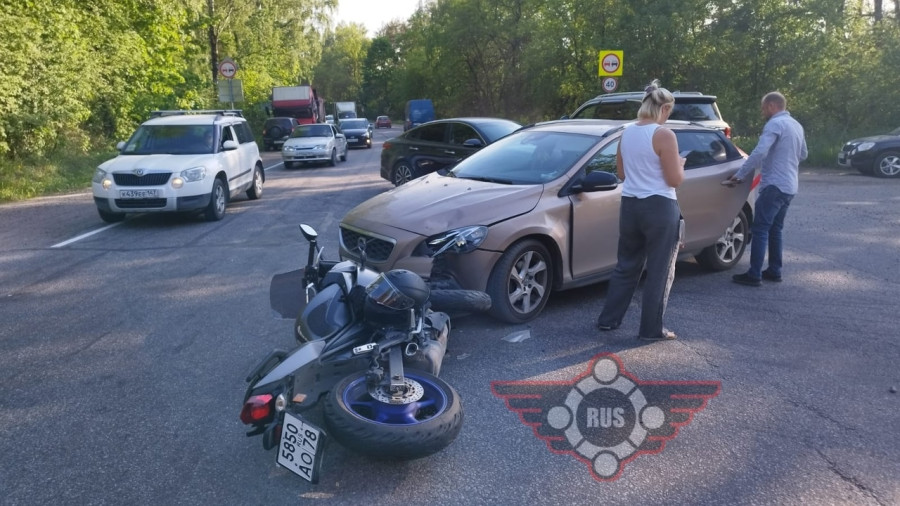 Дтп с мото на 41К-078, Колбино, Лен.обл. (59.944429, 30.656091). Авто и мот Yamaha XJ6 Diversion номер 5850АО78. Мотоциклист в порядке. Ждут ДПС.