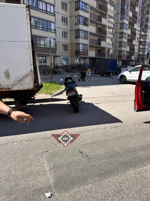 Дтп с мото 04.06.2024 на Европейском пр., д.15А, Кудрово. Авто и мот. Мотоциклист не справился с управлением и столкнулся с попутным авто, совершающим левый поворот во двор. Мотоциклист в порядке. Место ДТП мотоциклист покинул, не дождавшись сотрудников ГАИ.